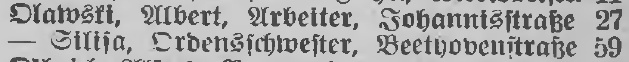 | Olawski, Albert, Arbeiter, Johannisstraße 27 —, Silisa, Ordensschwester, Beethovenstraße 59 |